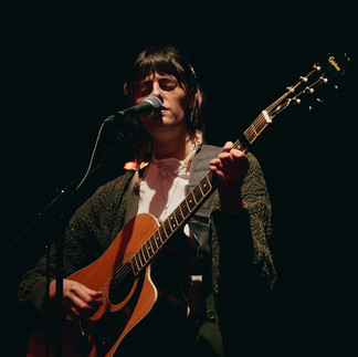 Brighton’s Frances Mistry was next on stage, tonight performing a solo set on the back of playing some recent dates with a full band around her. Armed just with her voice and acoustic guitar which she set and reset to open tunings, the tall singer-songwriter commanded with a quiet presence, combining a bell-like vocal quality softened with nuanced inflections that lend her a beautiful individuality. Her opening song, “Live The Life I’d Never Have”, set a tone for the set with resonant strummed guitar anchoring her conversational lyrics which elevate the struggle of living and working through pain. The set mixed new material – the gentle romance of “New Hands To Hold” was next – and cuts from her two EPs to date. Frances introduced “In The Rain” as being about liking someone before realising that the picture you’ve created in your head is not real and “they are actually not very nice.” One of my favourites of hers, “Flower In The Garden” followed.